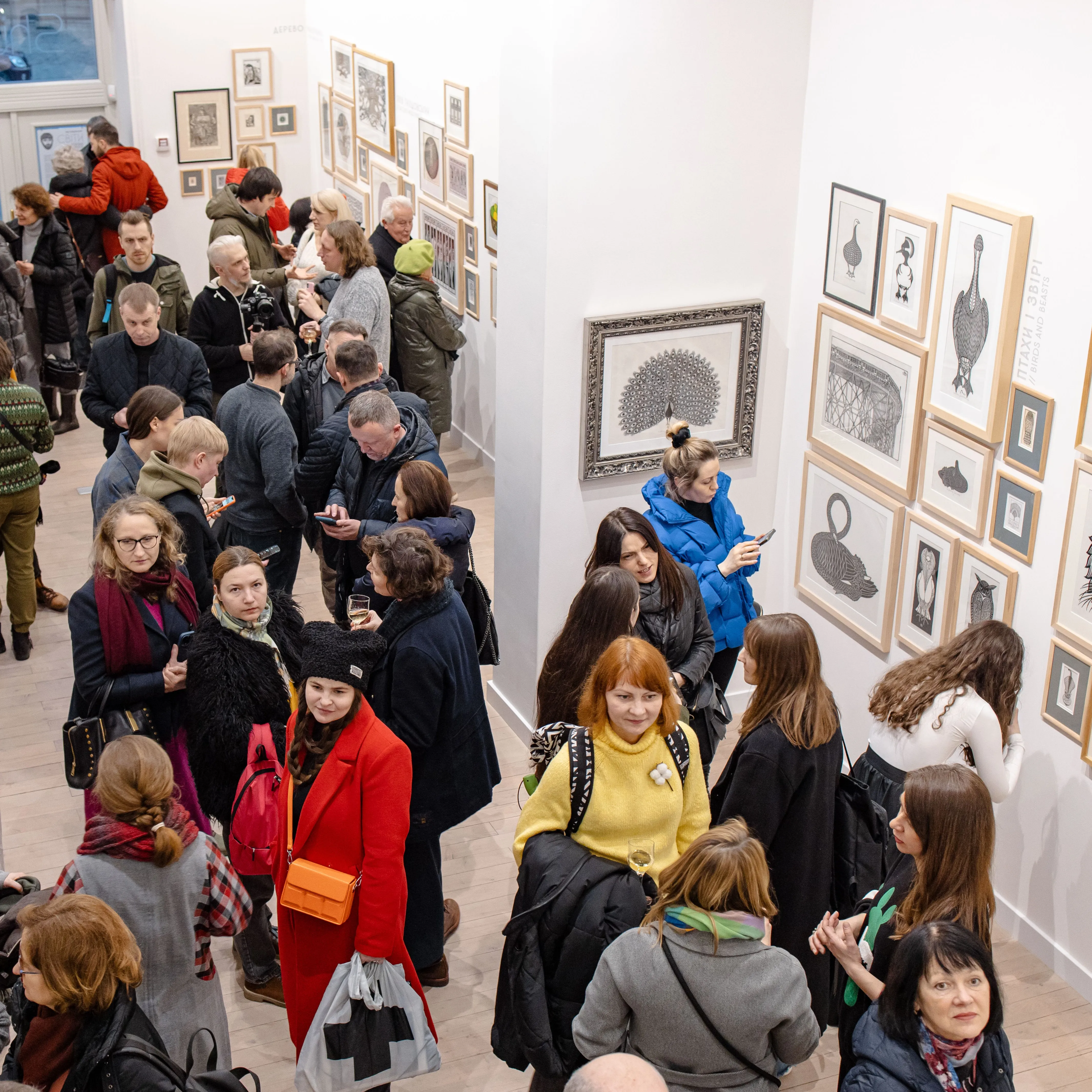 The exhibition featured nearly ninety works by the well-known and beloved Ukrainian-American graphic artist Yakiv Gnizdovsky (Pylipche, Ternopil Region, 1915 – New York, USA, 1985), created between 1947 and 1985, mostly in woodcut and linocut techniques. The exhibition was complemented by a rare 18th-century old print from Gnizdovsky's native village, as well as posters, ex-libris, and books that the artist designed during the 1960s-1980s.